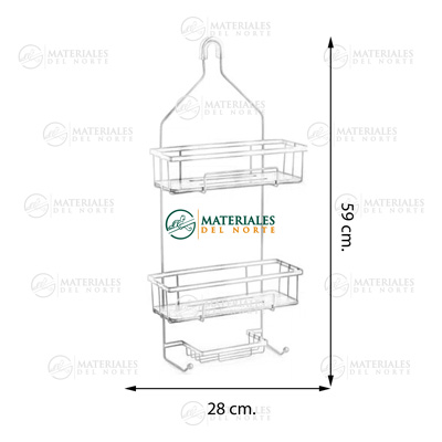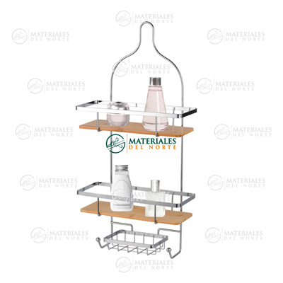 Organizador para baño, de dos estantes y jabonera para colgar en ducha.