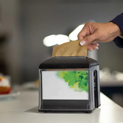 La servilleta Tork Xpressnap® color Kraft cuenta con un sistema de dispensado “una a la vez” que ayuda a la reducción en el consumo y desperdicio de servilletas hasta en un 25% vs sistemas convenciona...