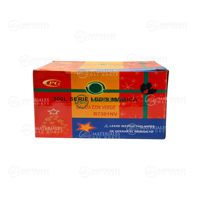 Serie con 300 luces LED verde y cálida. Tiene un control el cual le permite controlar la secuencia de iluminación con solo presionar el botón. Ideal para usar en espacios interiores y decoraciones.
