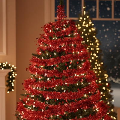 Guirnalda de escarcha roja de 7 metros, perfecta para añadir un toque de brillo festivo y tradicional a tu decoración navideña. Ideal para cubrir y decorar grandes áreas como un árbol de navidad, bara...