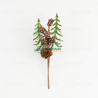 Adorno decorativo con bayas, piña y follaje en color café con textura diamantado. Es ideal para dar un toque de brillo y sofisticación a tus arreglos florales y decoraciones.