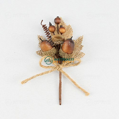 Rústico pick de bellotas y hojas de yute de 12 cm. Es ideal para dar un toque de naturaleza y un estilo rústico a tus arreglos florales y decoraciones, llenando cualquier espacio de un estilo único y...