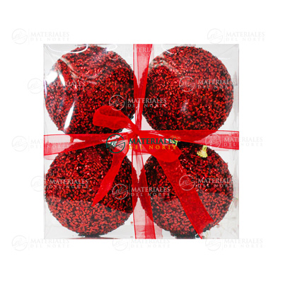 ESFERAS GRANULADAS ROJAS 10 cm 4-PK