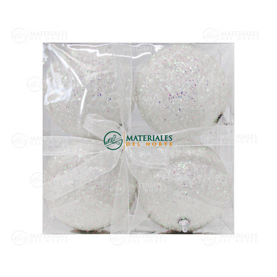 ESFERAS GRANULADAS BLANCAS 10 cm 4-PK