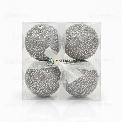 ESFERAS GRANULADAS PLATA 10 cm 4-PK