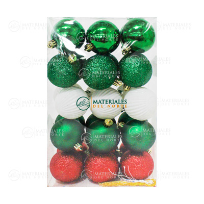 ESFERAS DE PLÁSTICO TRICOLOR 6cm 30-PK