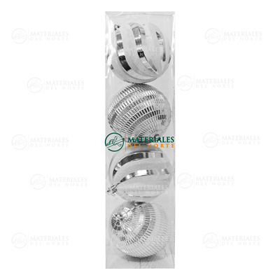 Set de 4 esferas plateadas de 10 cm de diámetro para decoración. Su acabado y relieve no solo es visualmente atractiva, sino que añade profundidad y una sensación táctil de alta calidad a tu decoració...