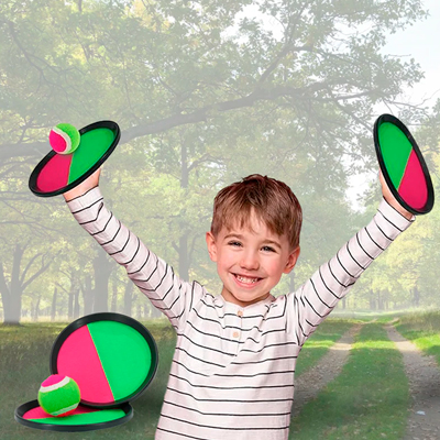 Manoplas de plástico resistente con velcro. Ideal para divertirse en familia o con amigos. Manoplas para 2 jugadores.