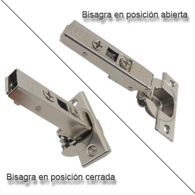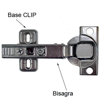 Bisagra CLIP top de 110° esta especialmente diseñada para colocarla en puertas de estantes y/o gabinetes, ya sean de madera o de metal.