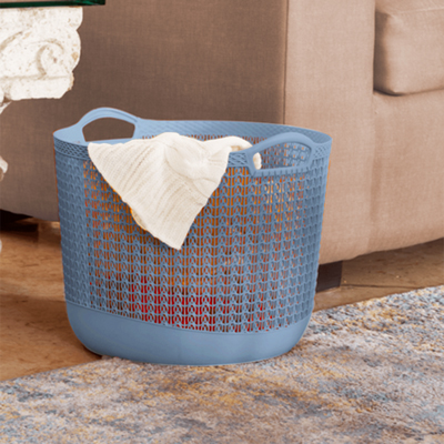 Canasta redonda con textura mitril fabricada en polipropileno de alta densidad. Es ideal para almacenar ropa y usarse en la lavandería, dormitorio o cuarto de baño.