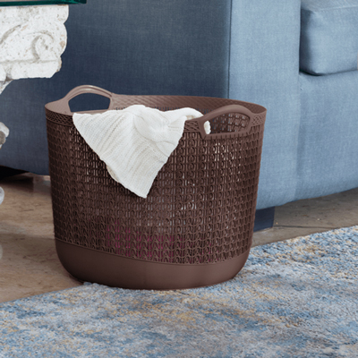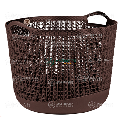 Cesta redonda color chocolate con textura tipo tejido mitril, fabricada en polipropileno de alta densidad. Es ideal para almacenar ropa y objetos, además puede usarse en la lavandería, dormitorio o cu...