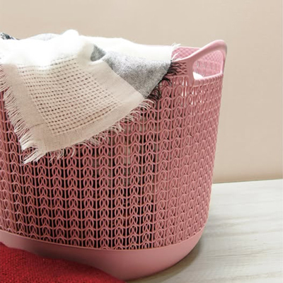 Cesta redonda rosa con textura tipo tejido mitril, fabricada en polipropileno de alta densidad para una mayor durabilidad. Es ideal para almacenar ropa y objetos, además puede usarse en la lavandería,...