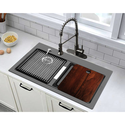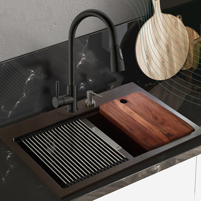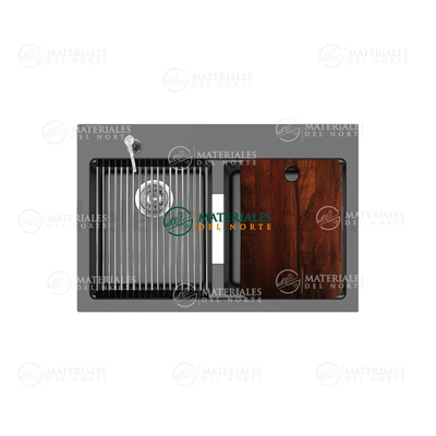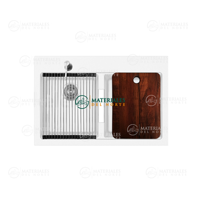 Fregadero de cocina con doble tina, fabricada con minerales de cuarzo. Se adapta perfectamente a cualquier encimera, ofreciendo una apariencia moderna y contemporánea. Incluye: tina doble, tabla de pi...
