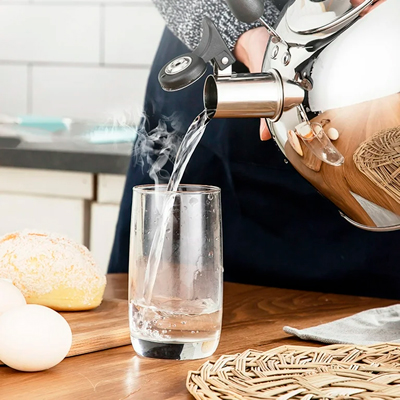 Hervidor clásico con silbato que combina diseño funcional y resistente. Su asa ergonómica y boquilla abatible permiten un manejo cómodo y seguro para hervir agua en cualquier tipo de cocina.