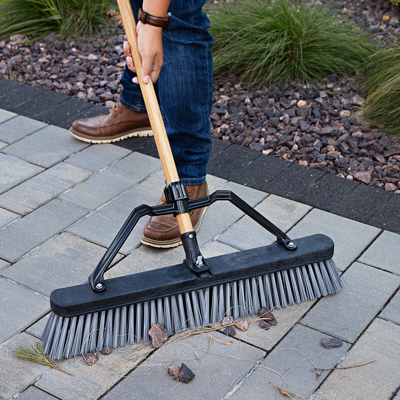 Escoba de empuje para superficies rugosas de 24" es ideal para trabajos pesados y contratistas. Sus fibras ecológicas están hechas de botellas de agua recicladas. Limpia superficies rugosas, como supe...