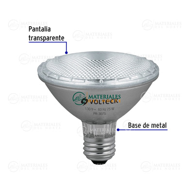 Lámpara de halógeno de 75 W con luz cálida.