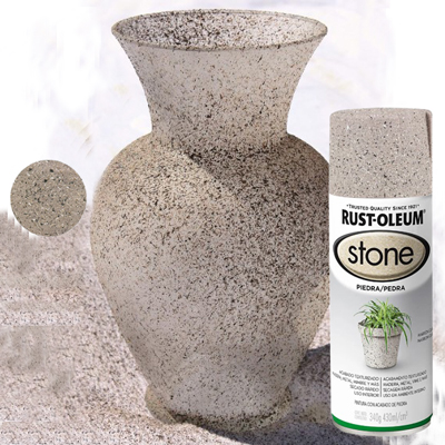 Es una pintura en aerosol que deja un acabado decorativo texturado símil piedra y transforma objetos comunes en proyectos únicos que imitan el look y la textura de la piedra. Para madera, metal, mimbr...