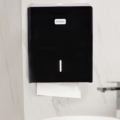 Dispensador de jabón líquido con un diseño minimalista color blanco, que se adapta a cualquier estilo de decoración. Es ideal para uso en áreas comerciales e industriales de tráfico moderado.