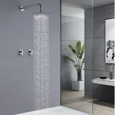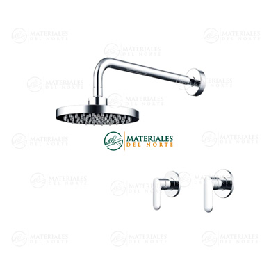Ducha en forma circular con dos manijas contemporáneo. En cromo pulido y textura lisa.