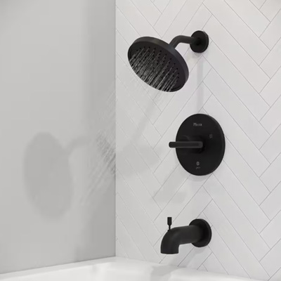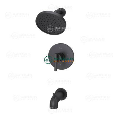 Kit para ducha contemporáneo negro. Incluye: cabezal de regadera, monomando mezclador y trim para tina de fácil instalación.