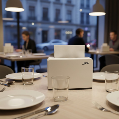 Dispensador de toallas interdobladas con capacidad de 250 unidades para mesa. Dispensa servilletas por la parte superior, además que es desmontable ejerciendo presión sobre los laterales. Su diseño mi...