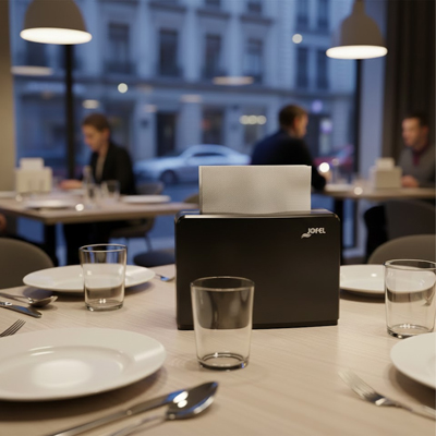 Dispensador para toallas interdobladas con capacidad de 250 unidades para mesa. Dispensa servilletas por la parte superior, además que es desmontable ejerciendo presión sobre los laterales. Su diseño...