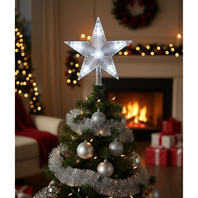Estrella de luz blanca con lámpara LED para decoración. Ilumine de forma sutil o destacada, creando el ambiente perfecto para cualquier ocasión. Ideal para usar en espacios interiores.