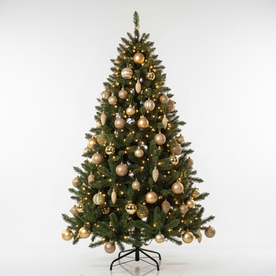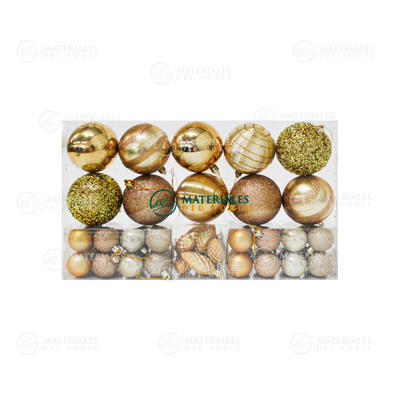 Paquete de 50 esferas en acabado diamantado, mate y texturizado en color dorado. Incluye 10 esferas de 8 cm de diámetro, 32 esferas de 4 cm de diámetro y 8 piñas de 6 cm. Ideales para una decoración a...