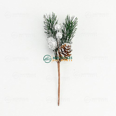 Adorno decorativo con bayas, piña y follaje en color plata con textura diamantada. Es ideal para dar un toque de brillo y sofisticación a tus arreglos florales y decoraciones navideñas, obtén un esti...
