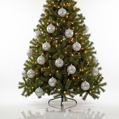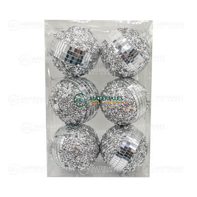 Set de 6 esferas cubiertas de lentejuela con hileras de espejos cuadrados de 10 cm de diámetro. Es una esfera de forma tradicional, con un casquillo plateado en la parte superior para colgarla. Ideal...