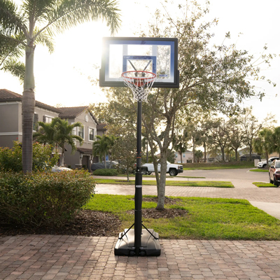 Sistema de baloncesto portátil, con un tablero de policarbonato de 48”. Tiene un sistema de ajuste de altura que permite llevar el juego a otro nivel.