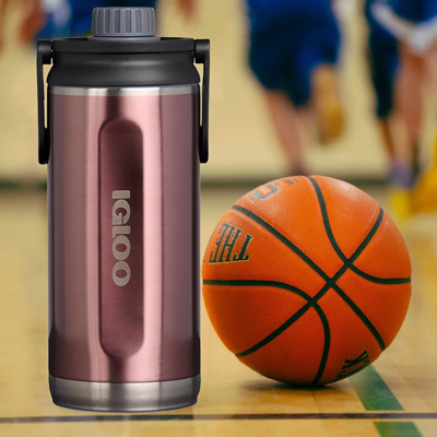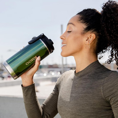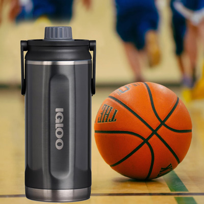 Botella de acero inoxidable con tapa intercambiable a prueba de fugas. Cuenta con una retención de calor / frío súper duradera.