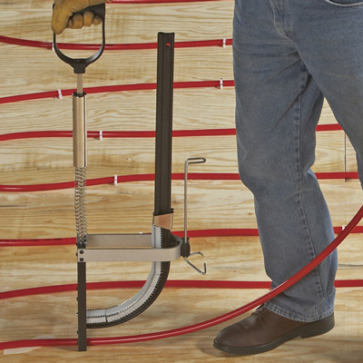 La pistola de grapas manual y vertical QHUMFSG fija rápidamente los tubos PEX al aislamiento rígido utilizando las grapas adecuadas.