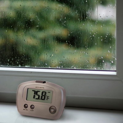 Termómetro digital para interior y exterior que registra temperaturas máximas y mínimas, y su pantalla trae luz para su fácil lectura.