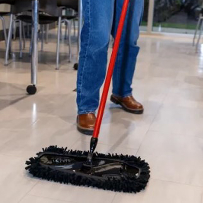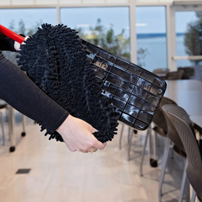 ✓ El cabezal de microfibra sintética de 47 cm de ancho atrapa el polvo, la suciedad y el pelo.