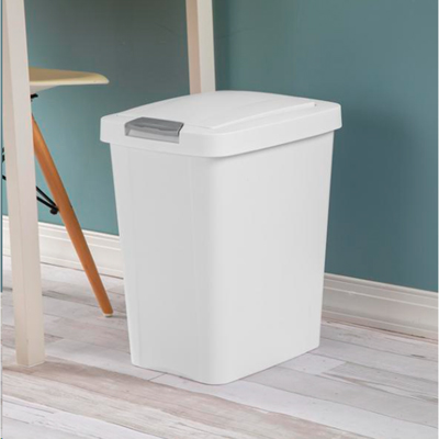 Cesto de basura de 7.5 galones con acabado texturizado color blanco. Su forma delgada está diseñada para adaptarse a espacios estrechos. Tiene un sistema de apertura de tapa que se abre con un toque y...