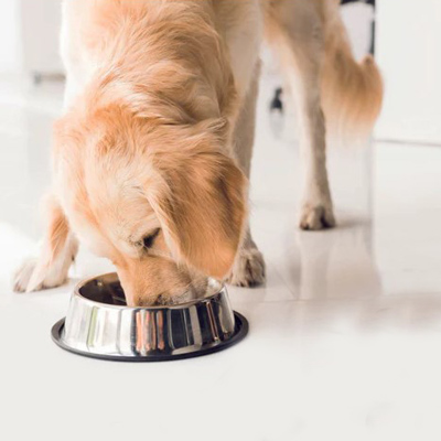 Plato de acero inoxidable, durable, resistente y fácil de limpiar. Ideal para mascotas de talla grande.