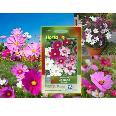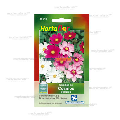 Sobre de semillas de cosmos variado para sembrar en tu jardín o maceta. El sobre contiene 1.3 g. y rinde hasta 200 plantas aprox. Usos: macizos altos, ramos, jardines y macetas. Siembra: en macetas...