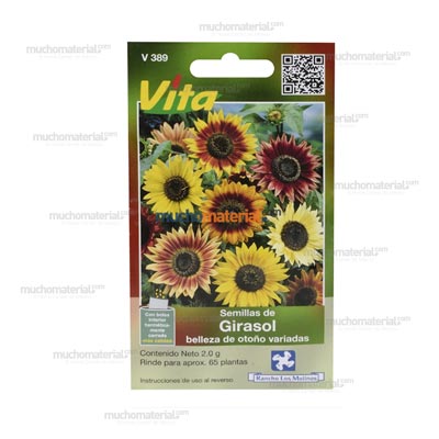 Semillas de girasol 2 gr multicolor Vita, es una planta con flores de colores variados de hojas oscuras con tallos rígidos, el contenido rinde para aproximadamente 65 plantas con un tiempo de maduraci...