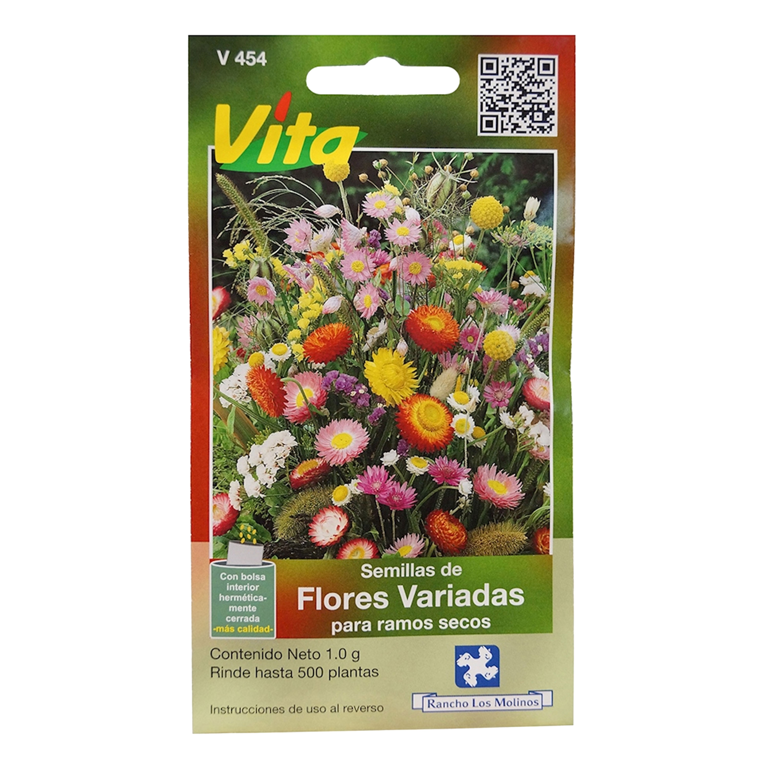Mezcla de flores anuales de coloridos variados y tornasolados que permiten realizar magnificos ramos secos de colores luminosos. Usos: ramos secos, macizos altos, jardín y macetas. Siembra: directamen...