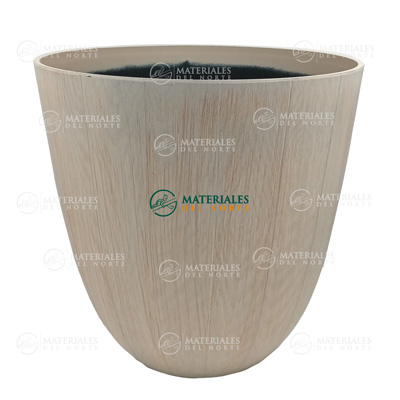Maceta de 38 cm en acabado crema, ideal para interiores y exteriores. Su color neutro se adapta a distintos estilos y tiene orificio de drenaje para un buen crecimiento de las raíces.