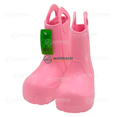Calzado ligero y práctico para proteger a los niños de la lluvia, diseñado en color rosa con materiales resistentes y disponible en talla 21 infantil.
