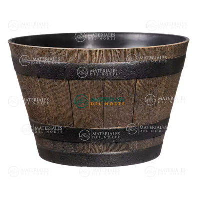Maceta decorativa tipo barril de 20.5”, fabricada en resina ligera y duradera. Ideal para el cultivo de frutos o vegetales de tamaño chico, y la siembra de plantas florales.