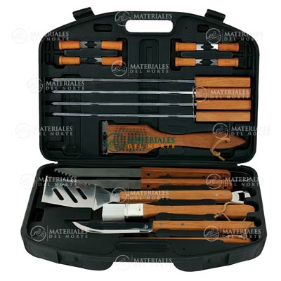 Perfecto para el chef de viaje, este juego de 18 piezas de acero inoxidable para asar al aire libre es fácil de llevar contigo desde el patio trasero hasta el camping en una funda de plástico duradera...
