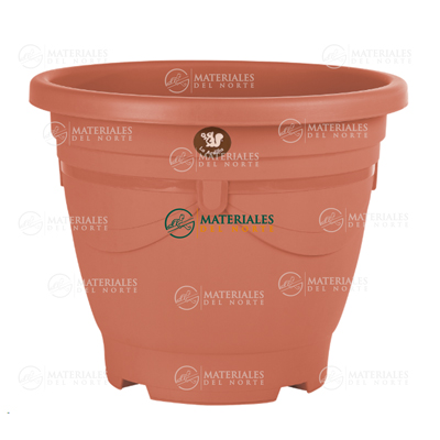 Maceta cilíndrica de 42 cm de diámetro con texturas orgánicas en sus superficies. La hacen la maceta ideal para plantar flores y/o plantas de tamaño mediano y/o grande. Su apariencia en color chocolat...