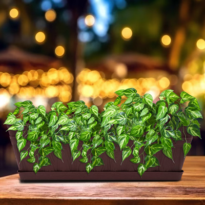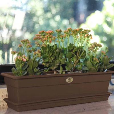 Maceta rectangular color barro con base para drenar agua. Elaborada en plástico de alta calidad permite plantar flores y/o plantas de tamaño mediano y/o grande. Ideal para espacios interior o exterior...